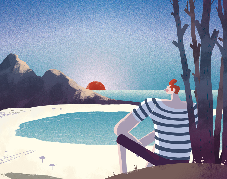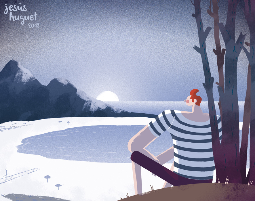 Il·lustració realitzada per al calendari de la Conselleria de Presidència de la Generalitat Valenciana l’any 2018. Baix, una versió de color descartada per al mateix treball.